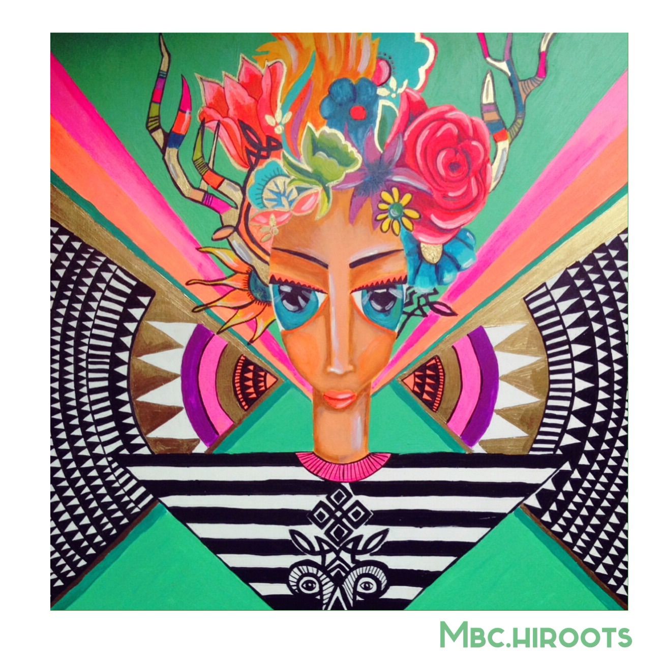 “Mulu” is a female name in Amharic which means “whole” and “perfection.” Yosef describes the term as her alter ego who, “represents the special women in my life and empowers them.” These four women fill the canvas, creating a monumental world unto themselves.